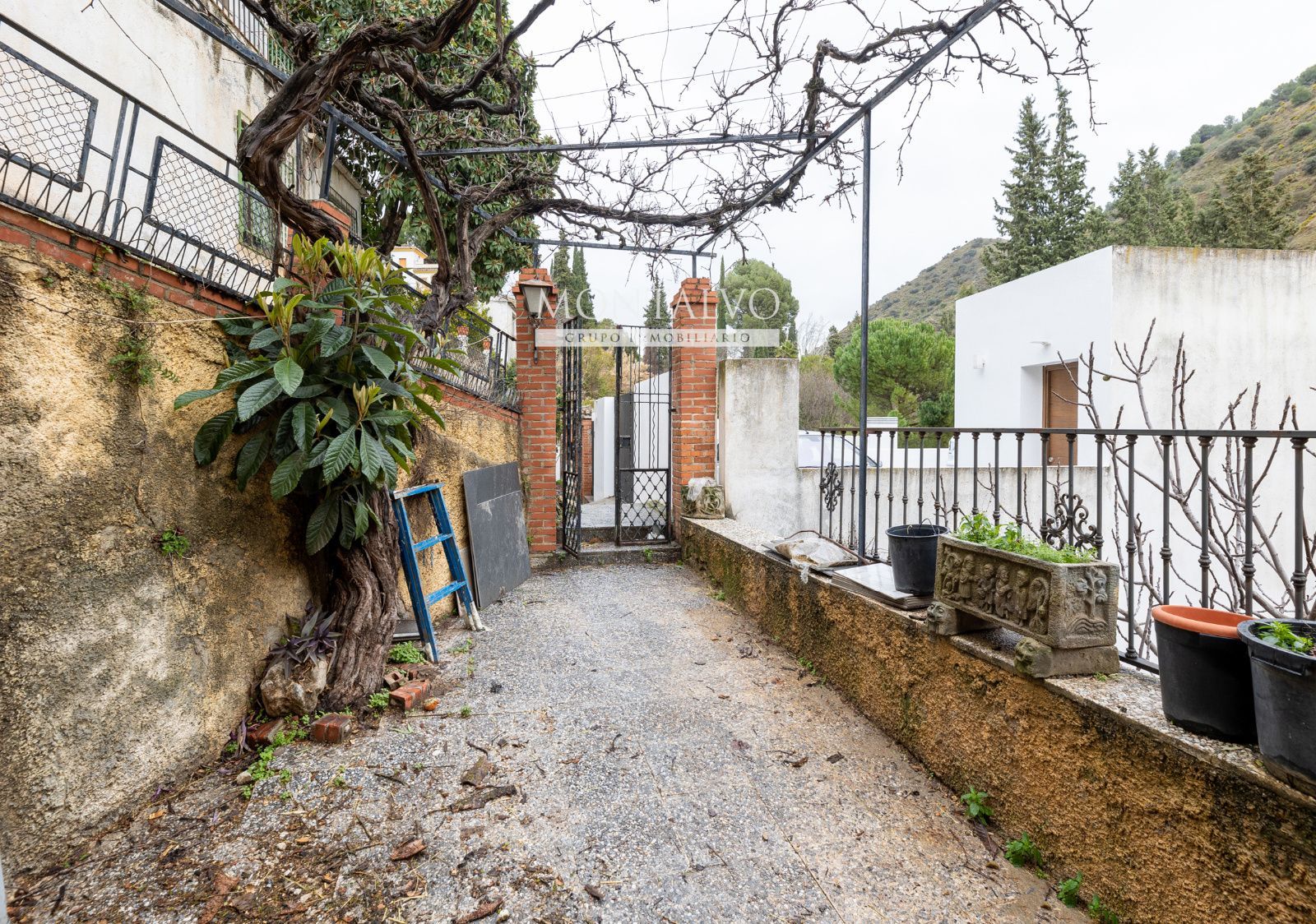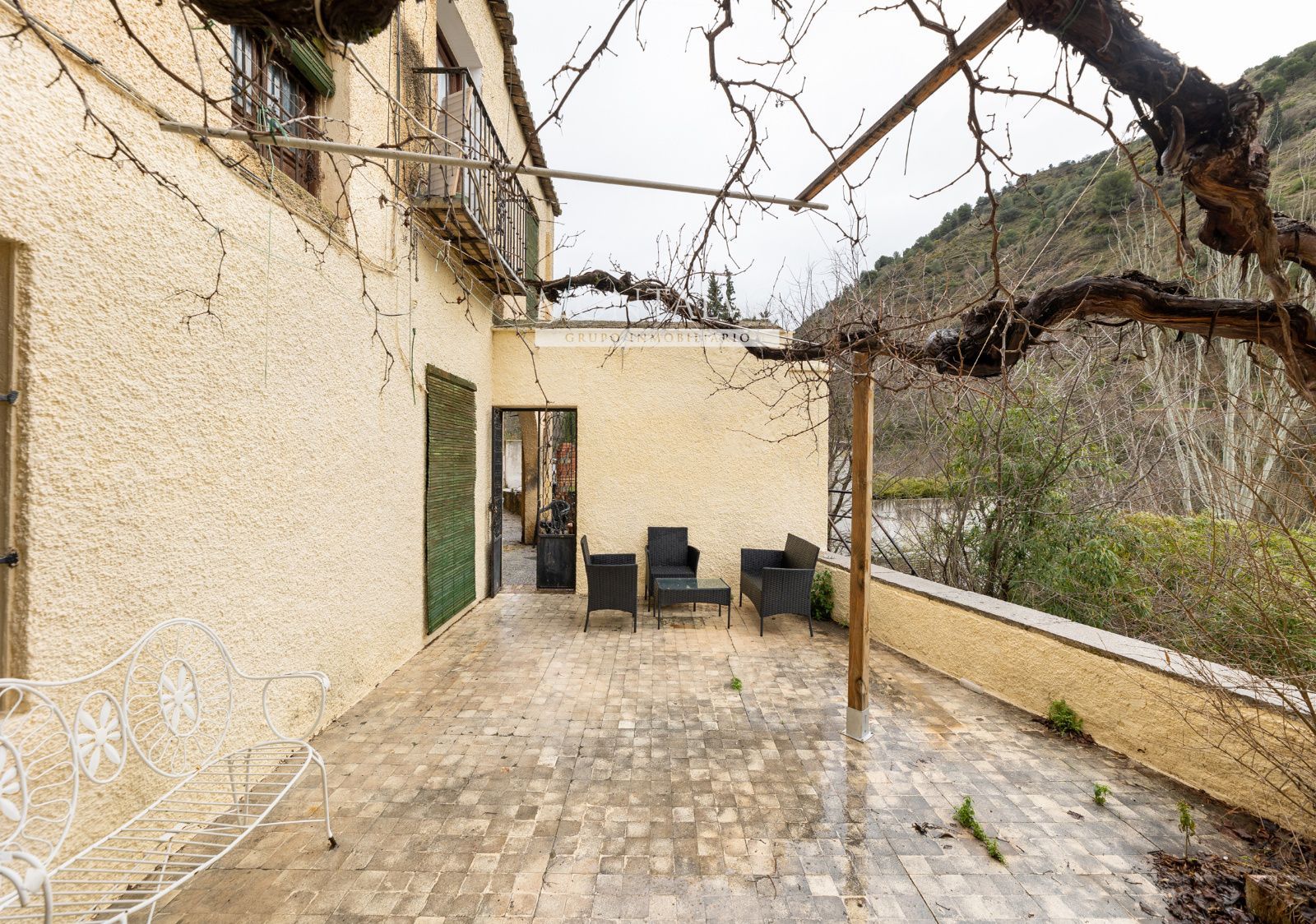 Uno de sus grandes atractivos es el porche en la entrada, un espacio perfecto para disfrutar de momentos tranquilos al aire libre, leer, contemplar el paisaje o simplemente dejar pasar el tiempo con Granada como telón de fondo. La conexión con el exterior y el entorno natural forma parte esencial de la vivienda.