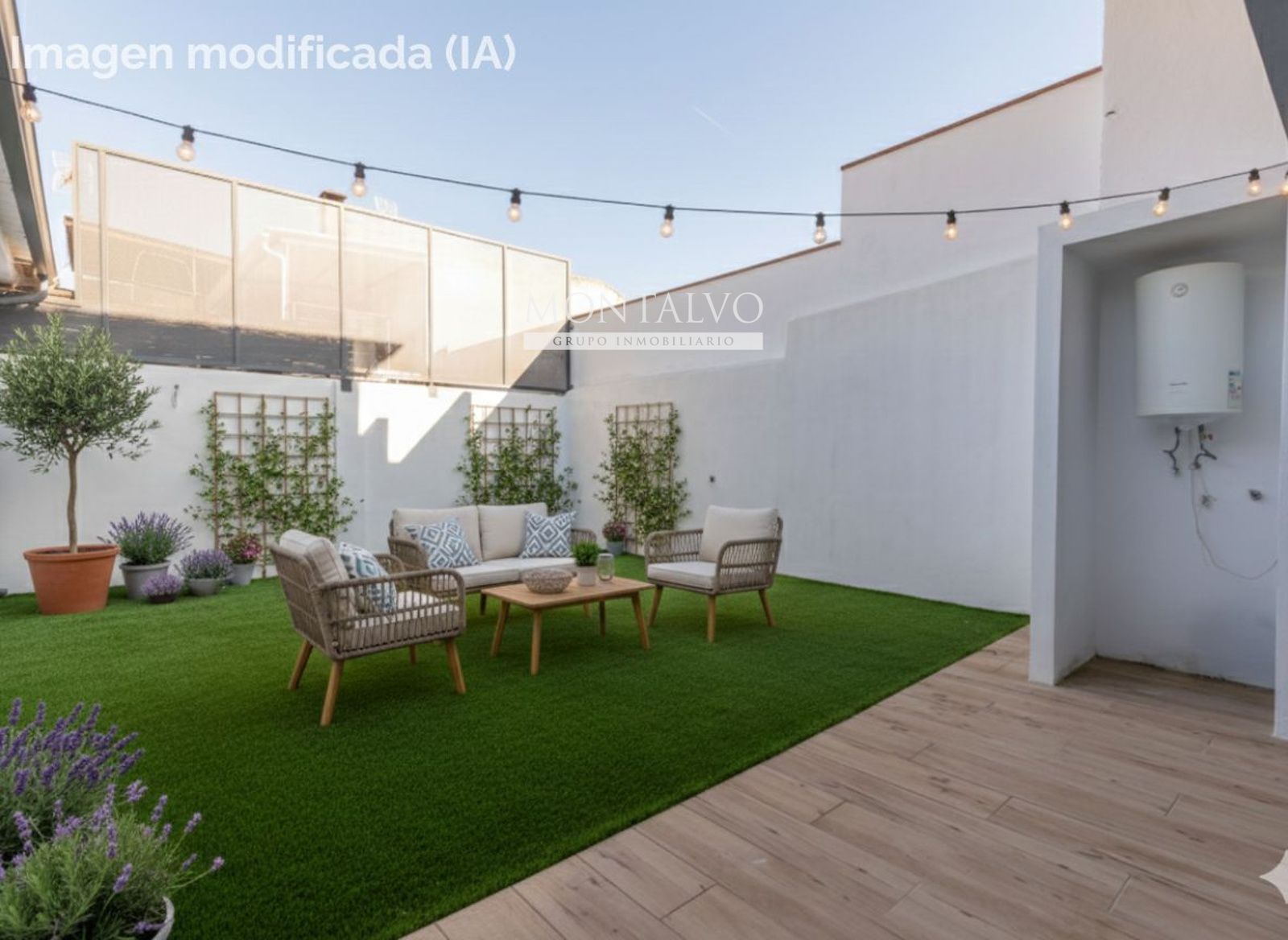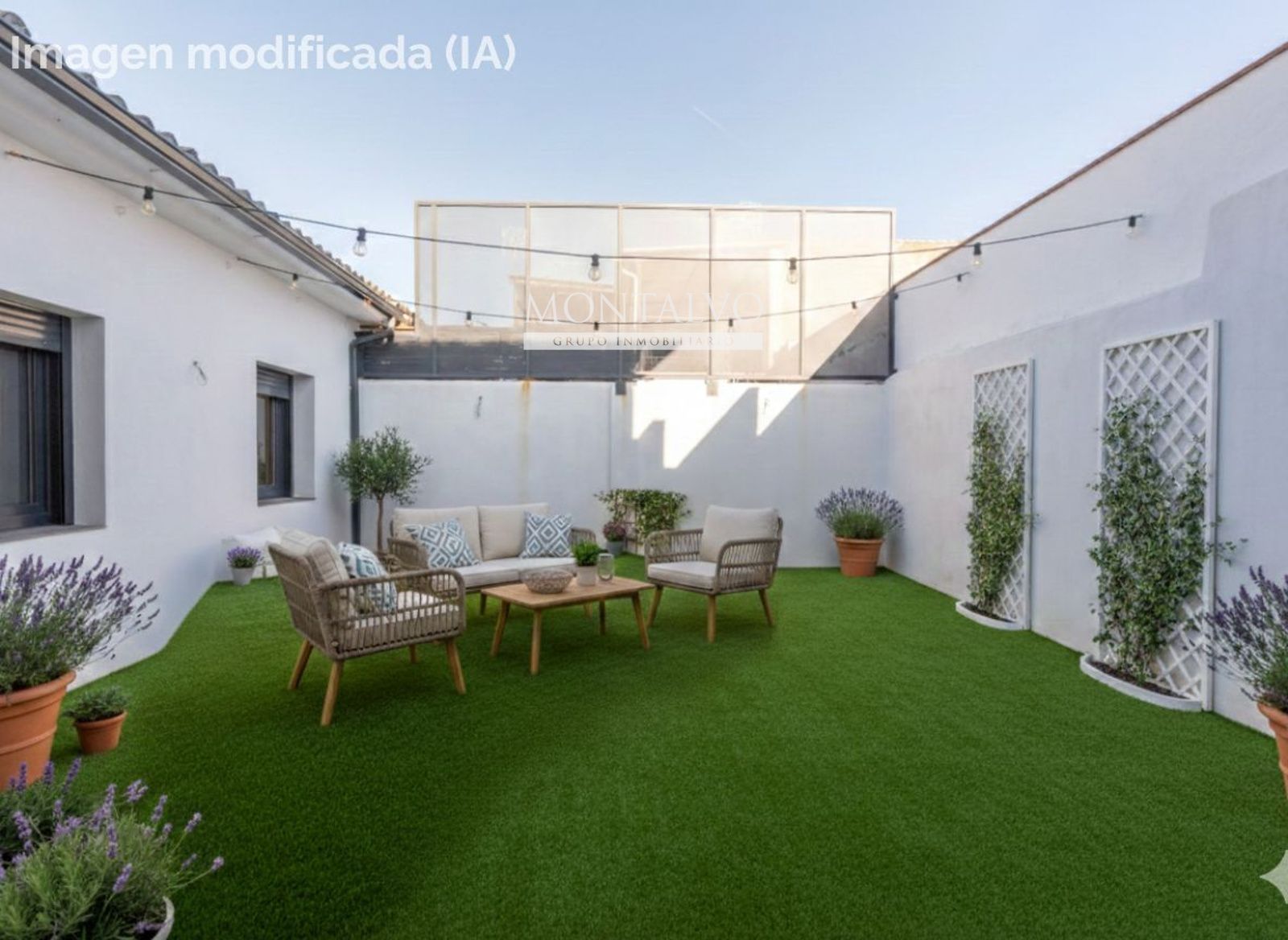 Desde el salón se accede directamente a un gran patio privado, perfecto para comidas al aire libre, celebraciones, zona chill-out o simplemente para que los peques jueguen seguros dentro de casa. Todo ello dentro de una parcela de casi 200 m² que aporta amplitud y privacidad.