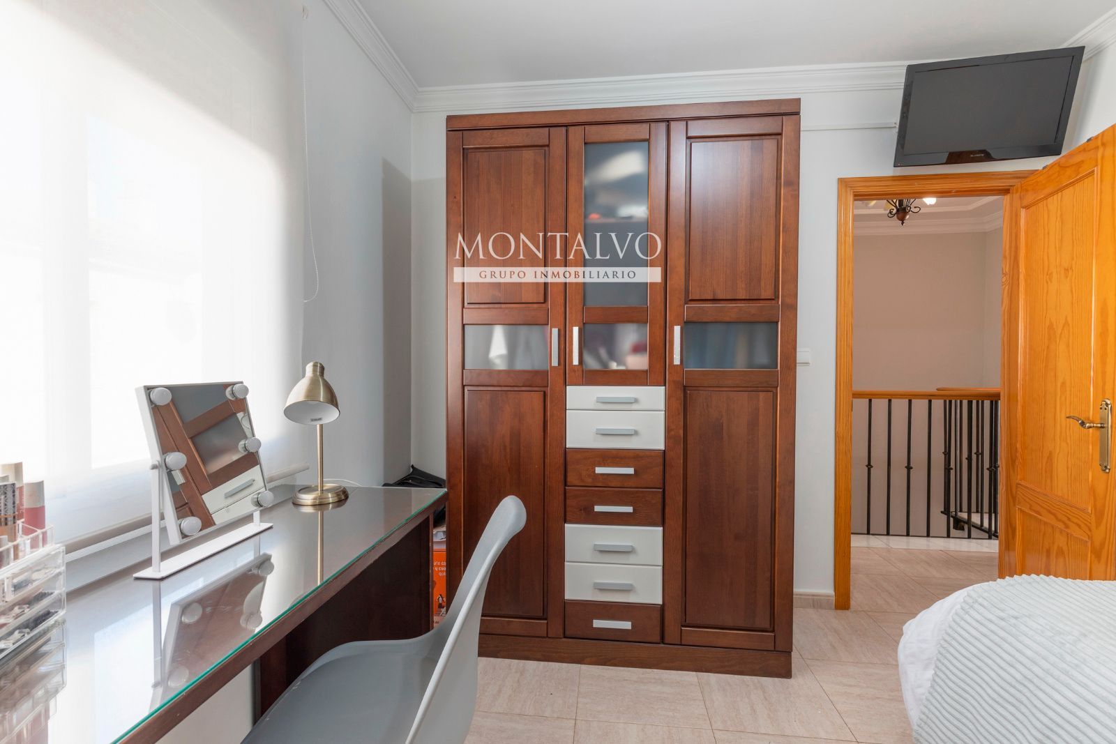 En la planta superior se sitúa la zona de descanso, compuesta por tres dormitorios. El dormitorio principal cuenta con vestidor, aportando ese extra de organización y comodidad que marca la diferencia. En esta planta encontramos además un baño completo que da servicio a los dormitorios.