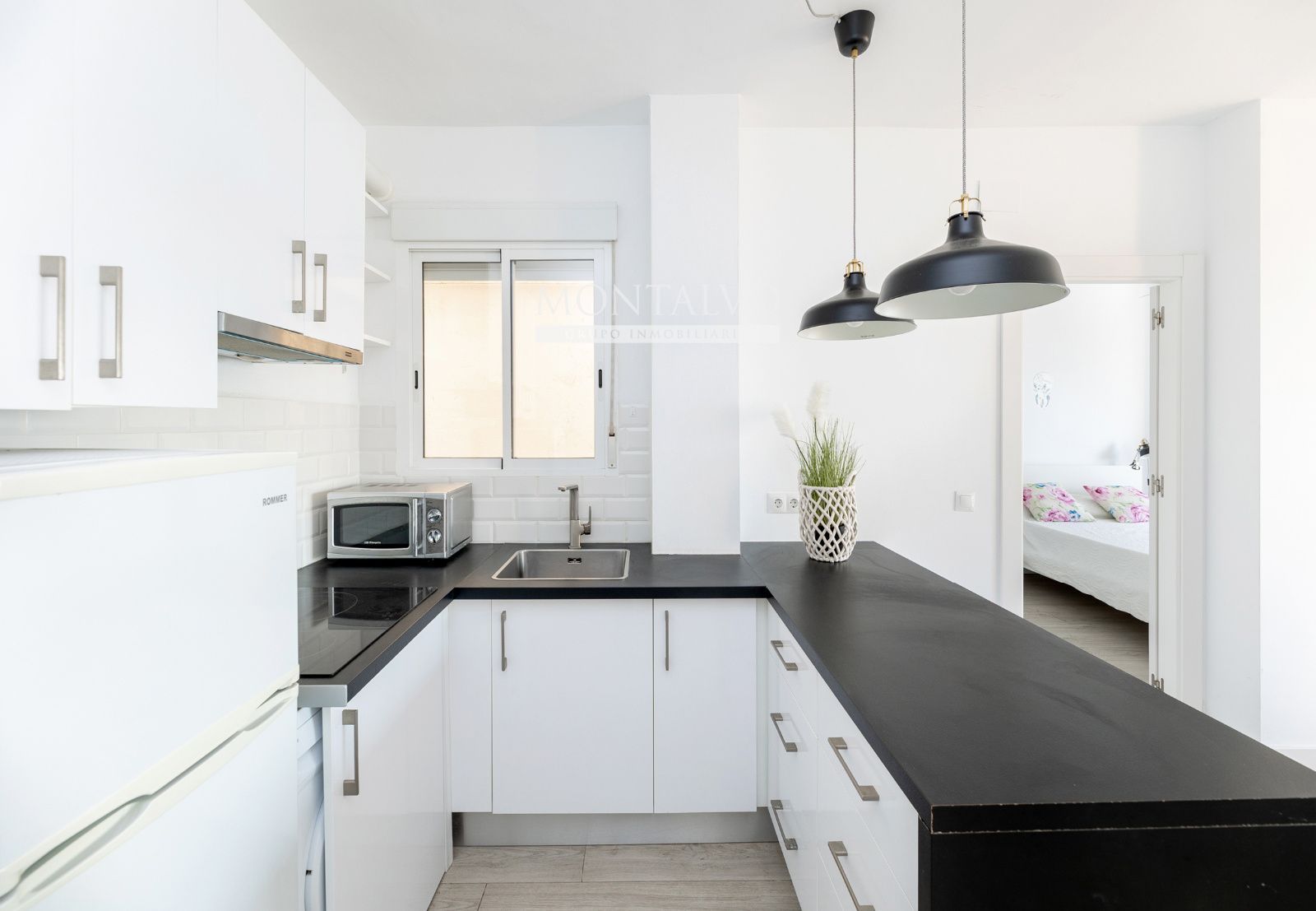 La vivienda dispone de dos dormitorios muy cómodos y luminosos, y destaca por sus dos baños, uno de ellos en suite, que aportan un plus de confort y privacidad difícil de encontrar en la zona. Luminoso salón-cocina integrado, un espacio moderno y muy funcional que aporta amplitud y permite compartir momentos mientras cocinas, charlas o simplemente disfrutas del ambiente relajado frente al mar.